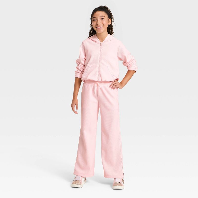 Girls' Waffle Textured Wide Leg Pants - All In Motion™ Light Pink XXL