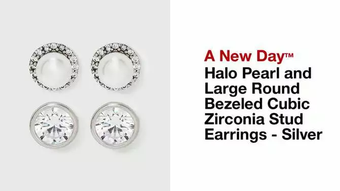 Halo Pearl and Large Round Bezeled Cubic Zirconia Stud 2pc Earrings - A New Day™