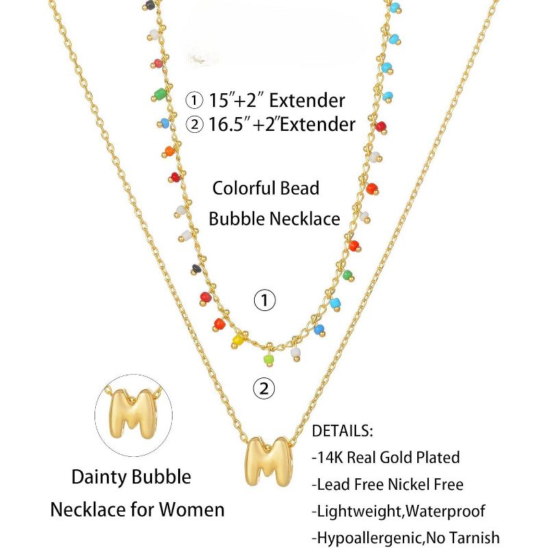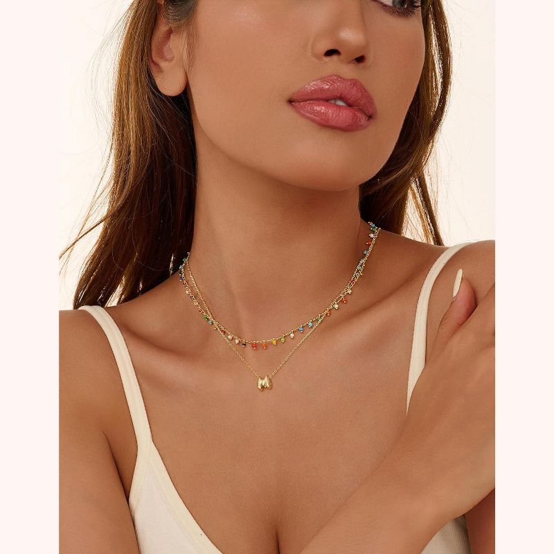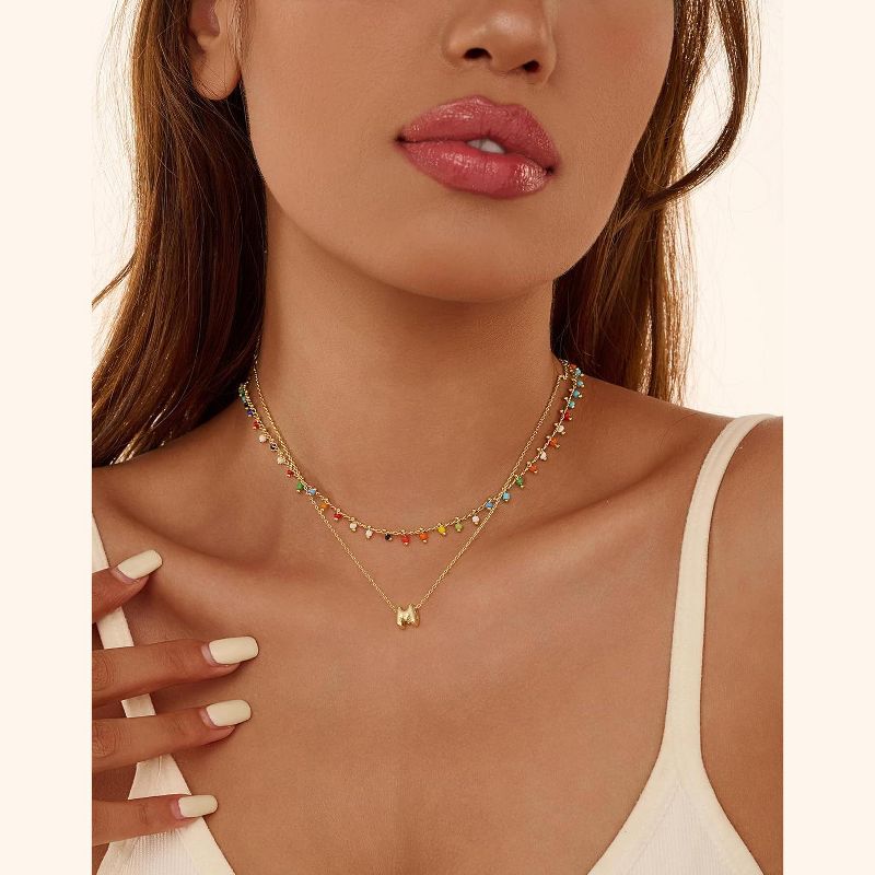 Colorful Bead Layered Initial Necklace for Women - Dainty Letter Choker, Personalized Beach Jewelry Gift