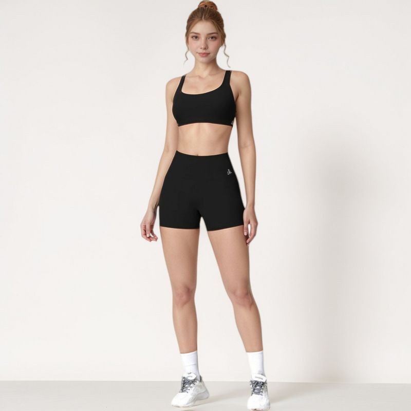 Anna-Kaci Active Women's Scoop Neck Sports Crop Top with Wide Shoulder Straps and Seamless Fit - Large, Black