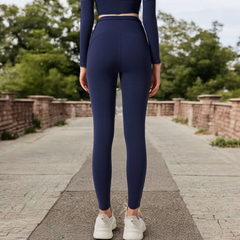 Anna-Kaci Active Women's High-Waist Twist Detail Full-Length Leggings - Medium, Navy