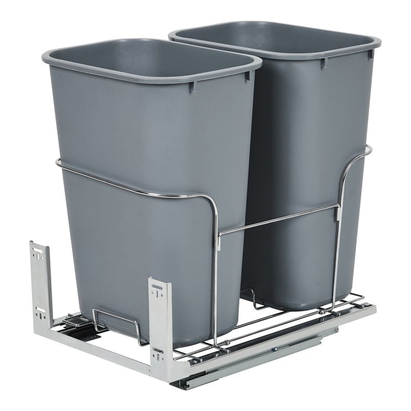 Pull Out Trash Can Under Cabinet 2x25 QT, Dual Bin Sink Garbage & Recycling Combo with Quiet Steel Slides, Space Saving Waste Container for Kitchen