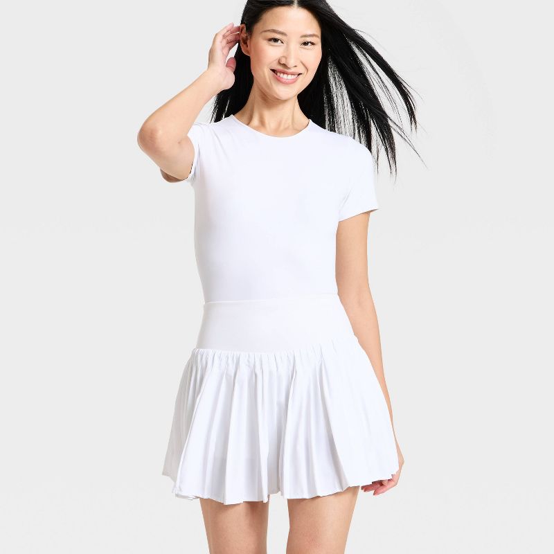 Women's High-Rise Woven Pleated Skort 15.75" - All In Motion™ White S: Moisture Wicking, Quick Dry, Built-in Shorts, UPF 50+